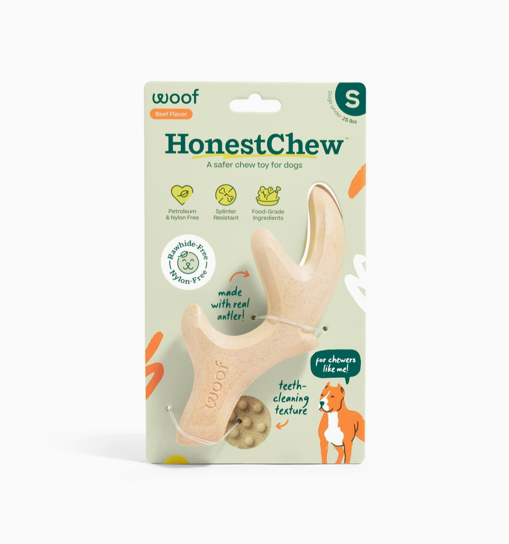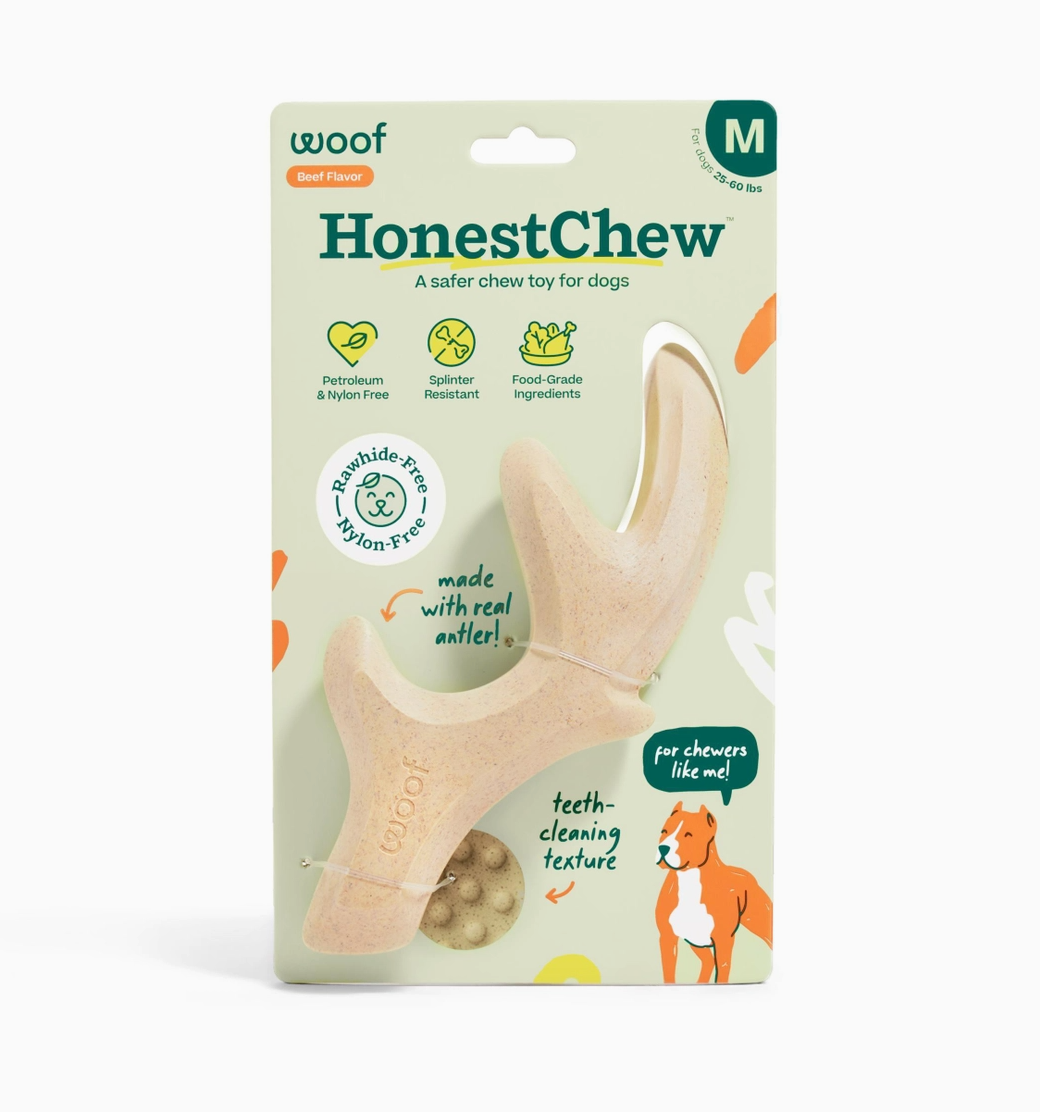 Lots of dog chews claim they’re natural — but look closer and you’ll find petroleum, and mystery flavors. HonestChew lives up to its name. Made with food-grade, plant-based ingredients like cellulose (a naturally tough fiber that gives plants their structure) and real antler for a satisfying chew time and gnaw-worthy flavor. Splinter-resistant and hypoallergenic, it’s a safer, more durable alternative to rawhide and traditional bones (healthier for teeth, too!). Got a dog with an appetite for destruction? HonestChew’s for you. Choose from Antler or Infinity Bone.