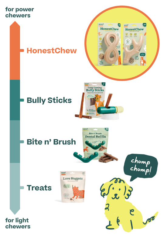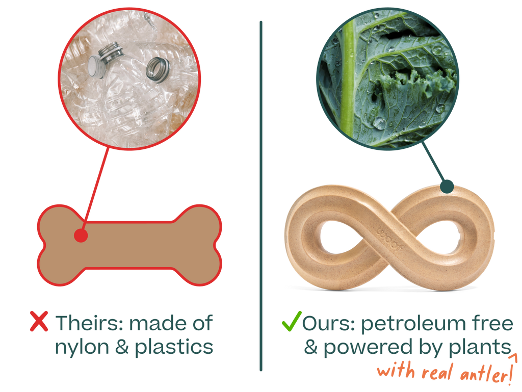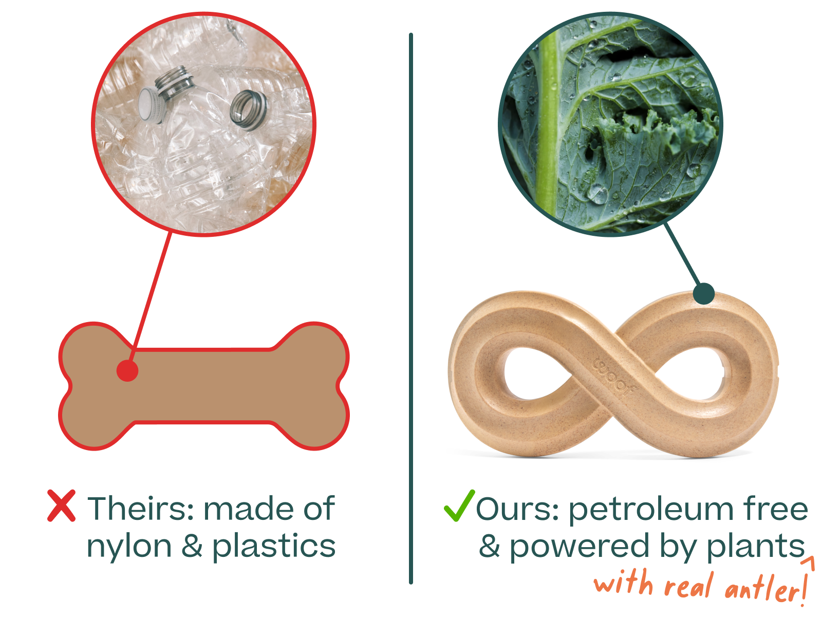 Lots of dog chews claim they’re natural — but look closer and you’ll find petroleum, and mystery flavors. HonestChew lives up to its name. Made with food-grade, plant-based ingredients like cellulose (a naturally tough fiber that gives plants their structure) and real antler for a satisfying chew time and gnaw-worthy flavor. Splinter-resistant and hypoallergenic, it’s a safer, more durable alternative to rawhide and traditional bones (healthier for teeth, too!). Got a dog with an appetite for destruction? HonestChew’s for you. Choose from Antler or Infinity Bone.