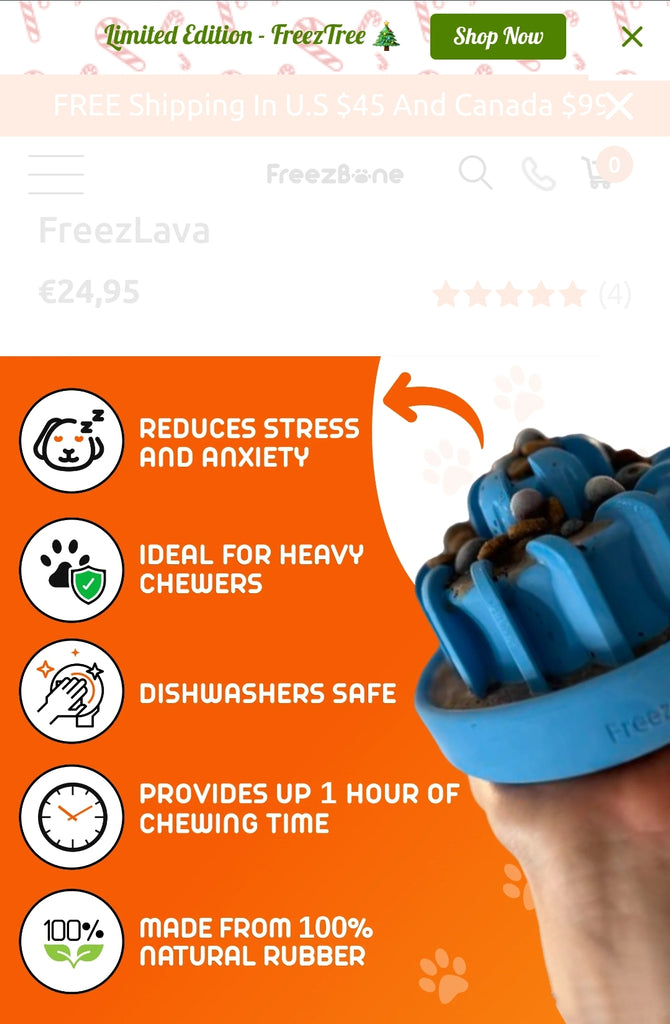 Size:The FreezLava isn't just any bone treat; it's the ideal refillable treat for your canine companion. Designed to accommodate dogs of all sizes, it features a diameter of 6 inches and a height of 4 inches, making it perfect for those weighing up to 140lbs.